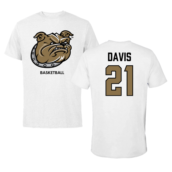 Bryant University Basketball White Classic Tee - #21 Aaron Davis
