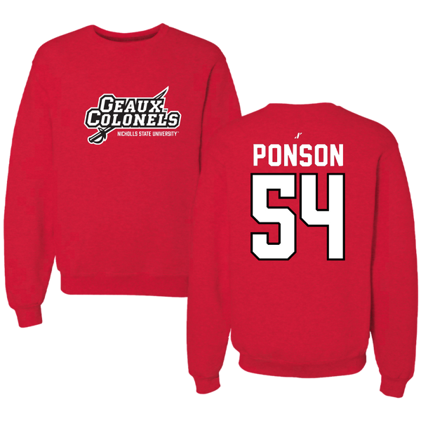 Nicholls State University Football Red Touchdown Crewneck - #54 Aaron Ponson