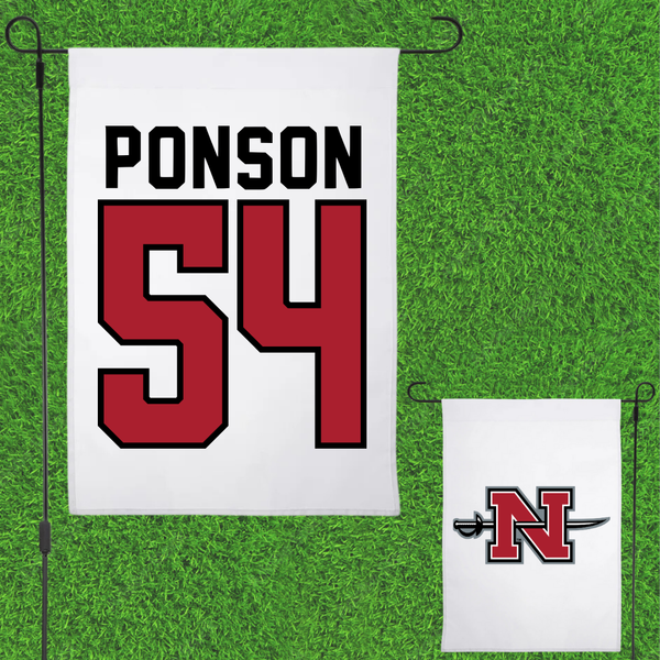 Nicholls State University Football White Garden Flag - #54 Aaron Ponson