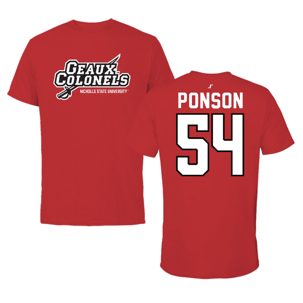 Nicholls State University Football Red General Tee - #54 Aaron Ponson