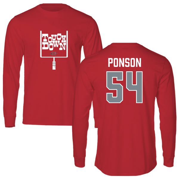 Nicholls State University Football Red Touchdown Long Sleeve - #54 Aaron Ponson