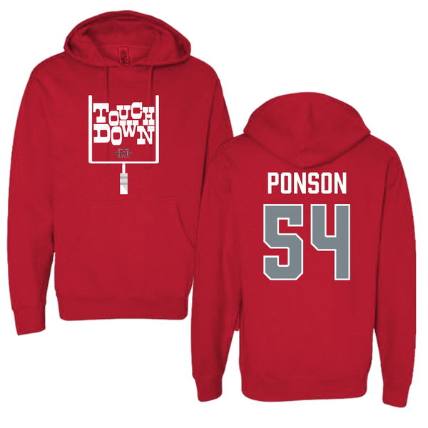 Nicholls State University Football Red Touchdown Hoodie - #54 Aaron Ponson