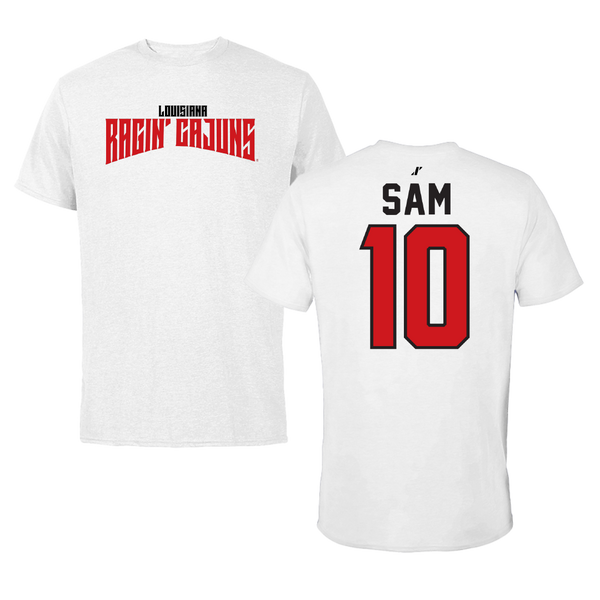 University of Louisiana at Lafayette Basketball White Classic Tee - #10 Aasia Sam