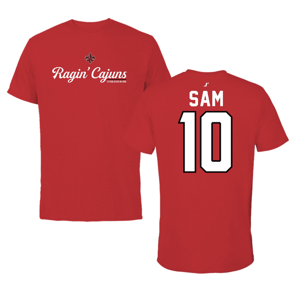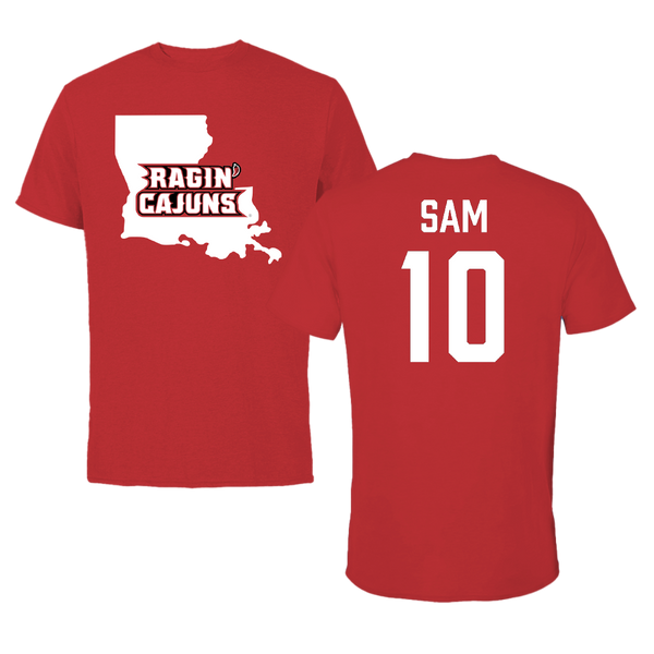 University of Louisiana at Lafayette Basketball Red State Tee - #10 Aasia Sam
