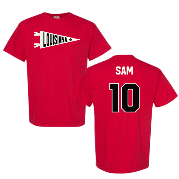 University of Louisiana at Lafayette Basketball Red Pennant Comfort Colors Tee - #10 Aasia Sam