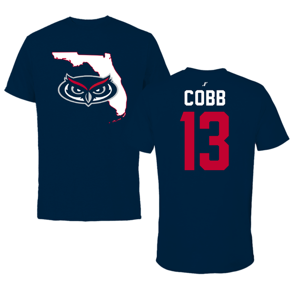 Florida Atlantic University Football Navy State Tee - #13 A'ceon Cobb