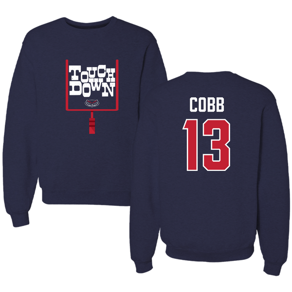 Florida Atlantic University Football Navy Touchdown Crewneck - #13 A'ceon Cobb
