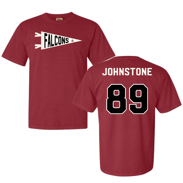 University of Wisconsin-River Falls Football Crimson Pennant Comfort Colors Tee - #89 Adam Johnstone