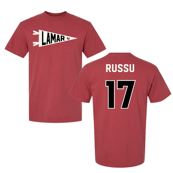 Lamar University Soccer Canvas Red Pennant Comfort Colors Tee - #17 Addison Russu