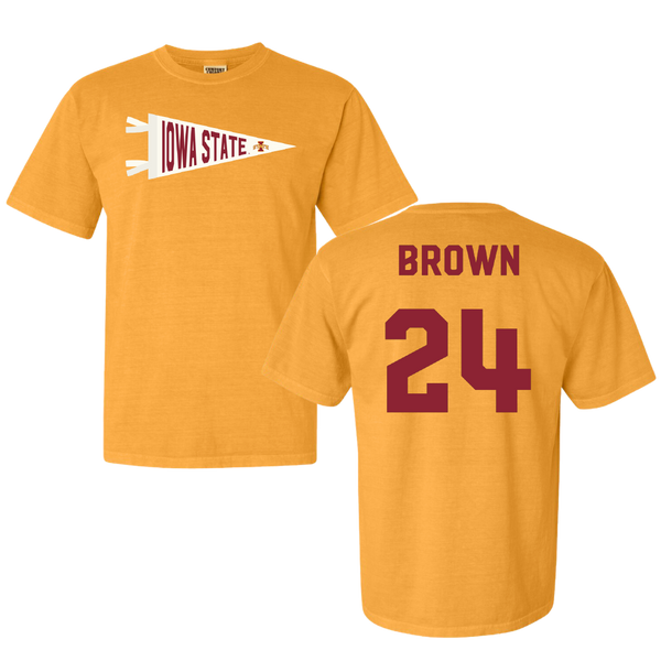 Iowa State University Basketball (W) Gold Pennant Comfort Colors Tee - #24 Addy Brown