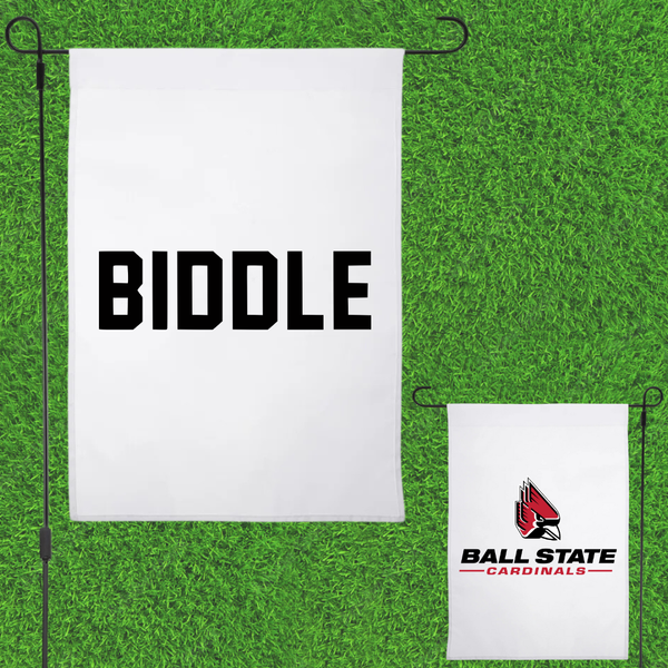 Ball State University Swimming & Diving White Garden Flag - Aidan Biddle