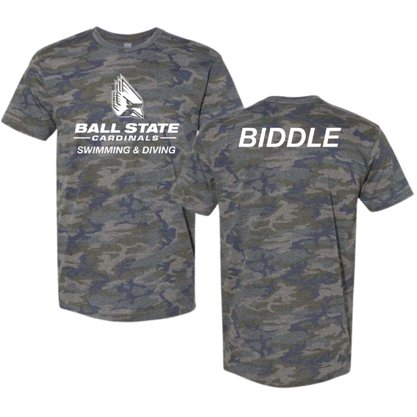 Ball State University Swimming & Diving Vintage Camo Tee - Aidan Biddle
