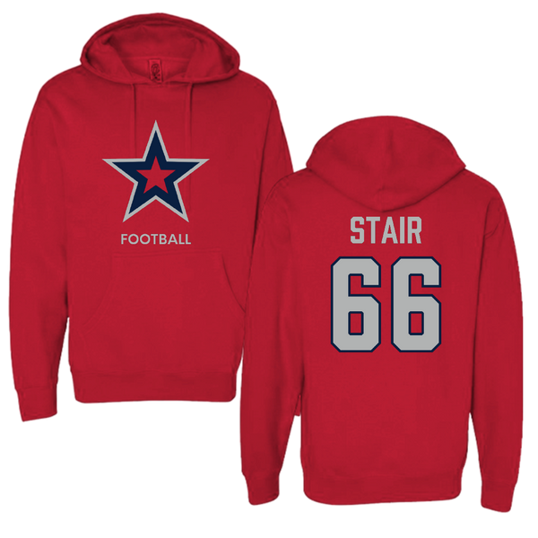 Robert Morris University Football Red Mascot Hoodie - #66 Aidan Stair