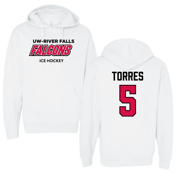 University of Wisconsin-River Falls Ice Hockey (M) White Falcons Hoodie - #5 Aidan Torres