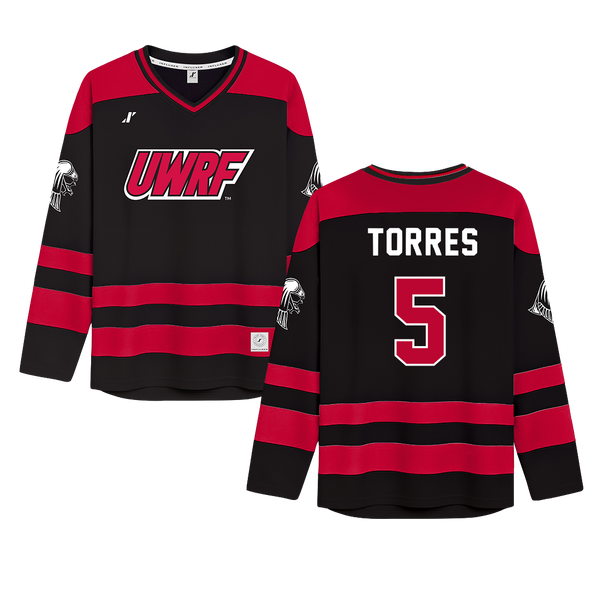 University of Wisconsin-River Falls Black Hockey Jersey - #5 Aidan Torres