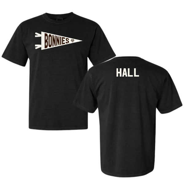 St. Bonaventure University Swimming & Diving Black Pennant Comfort Colors Tee - Aiden Hall
