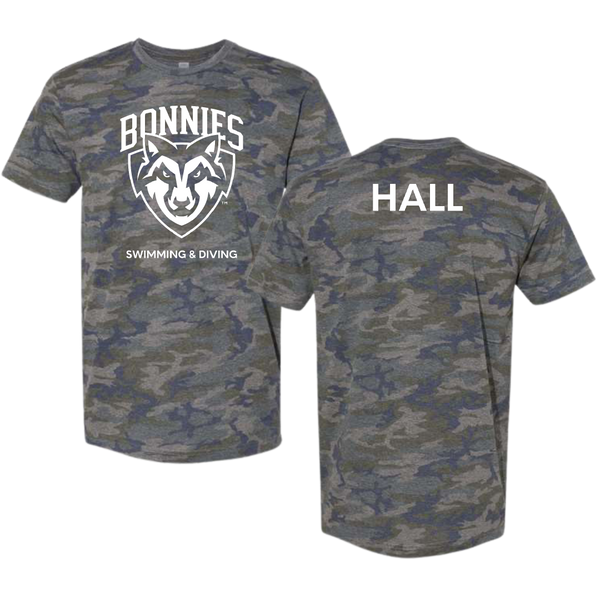 St. Bonaventure University Swimming & Diving Vintage Camo Tee - Aiden Hall
