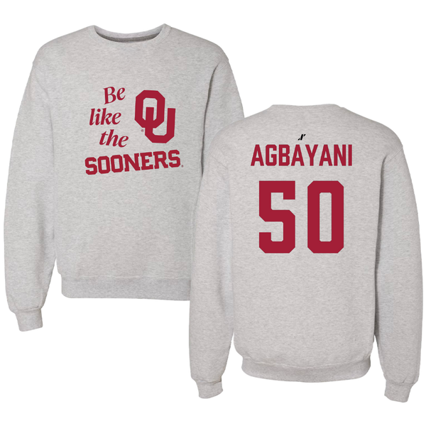 University of Oklahoma Softball Light Gray Be Like Us Crewneck - #50 Ailana Agbayani