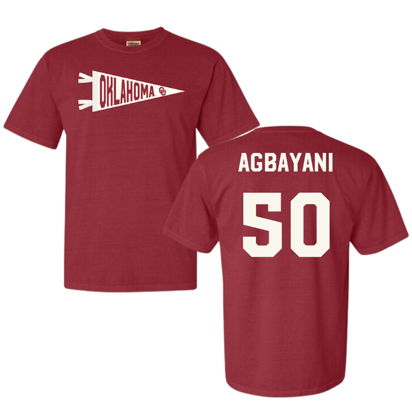 University of Oklahoma Softball Crimson Pennant Comfort Colors Tee - #50 Ailana Agbayani