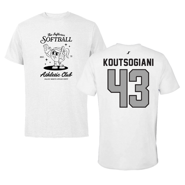 Softball White Influxer Athletic Club Tee - #43 Alaina Koutsogiani