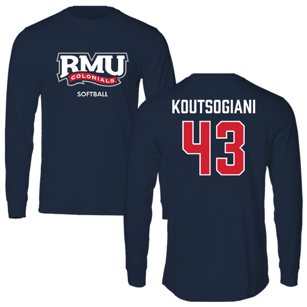 Robert Morris University Softball Navy RMU Long Sleeve - #43 Alaina Koutsogiani