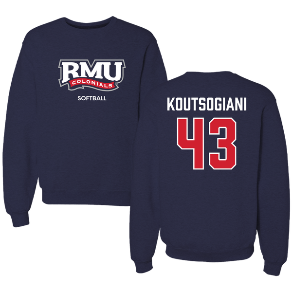 Robert Morris University Softball Navy RMU Crewneck - #43 Alaina Koutsogiani