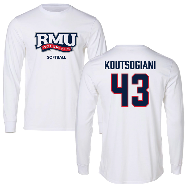 Robert Morris University Softball White Long Sleeve - #43 Alaina Koutsogiani