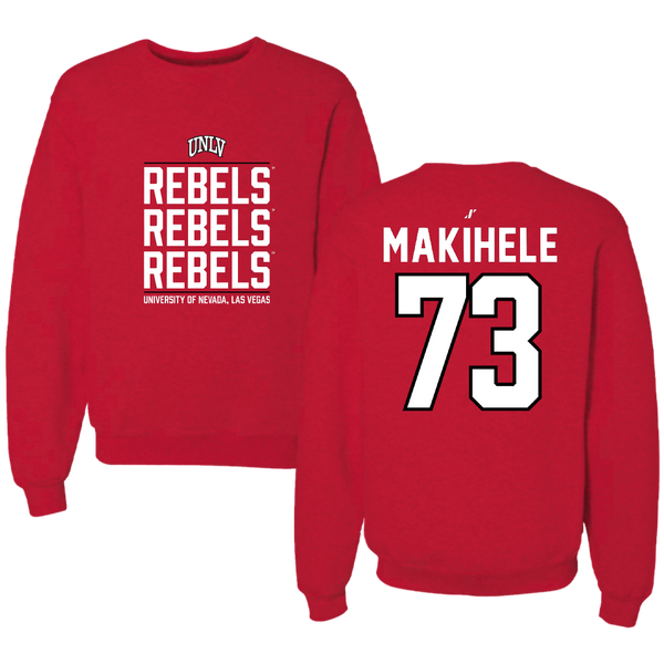 University of Nevada-Las Vegas Football Red General Crewneck - #73 Alani Makihele