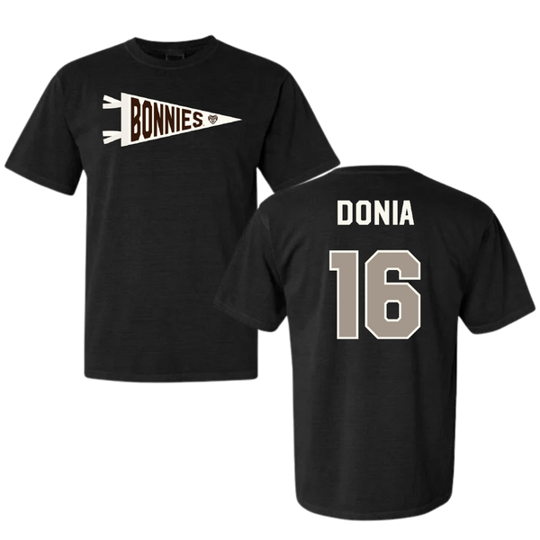 St. Bonaventure University Soccer Black Pennant Comfort Colors Tee - #16 Alessia Donia