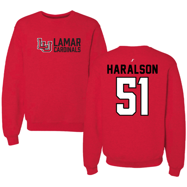 Lamar University Football Red General Crewneck - #51 Alex Haralson