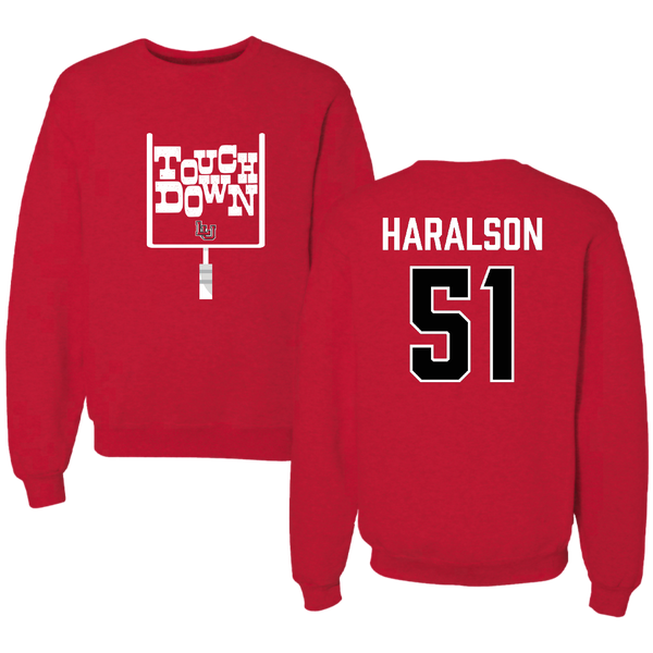 Lamar University Football Red Touchdown Crewneck - #51 Alex Haralson