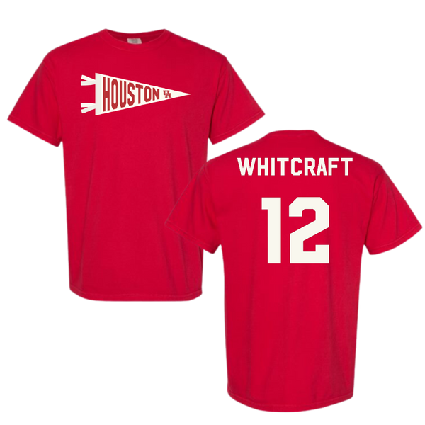 University of Houston Soccer Red Pennant Comfort Colors Tee - #12 Alex Whitcraft