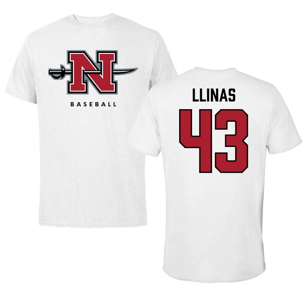 Nicholls State University Baseball White Classic Tee - #43 Alexander Llinas