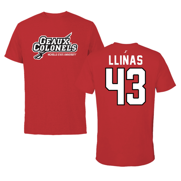 Nicholls State University Baseball Red General Tee - #43 Alexander Llinas