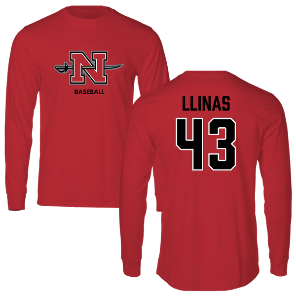 Nicholls State University Baseball Red Mascot Long Sleeve - #43 Alexander Llinas