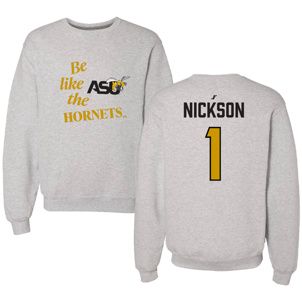 Alabama State University Football Light Gray Be Like Us Crewneck - #1 Willie Nickson