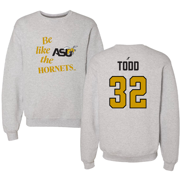 Alabama State University Football Light Gray Be Like Us Crewneck - #32 Azariel Todd