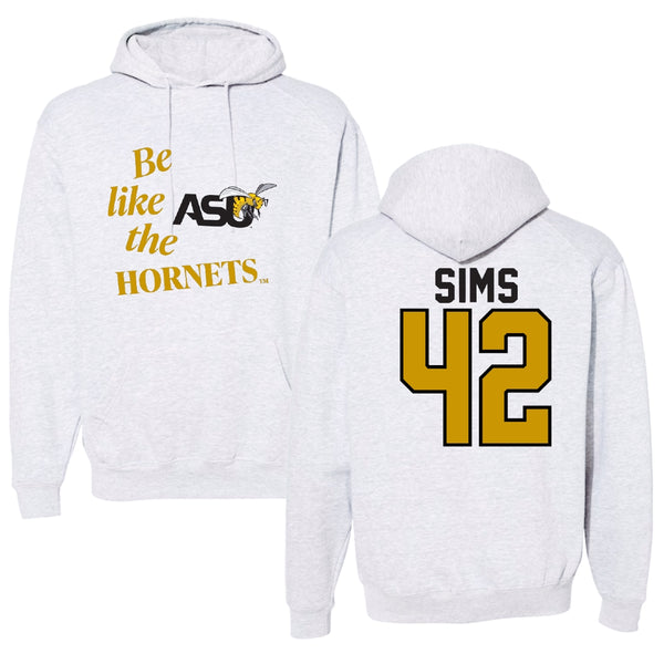 Alabama State University Football Light Gray Be Like Us Hoodie - #42 Tashaun Sims