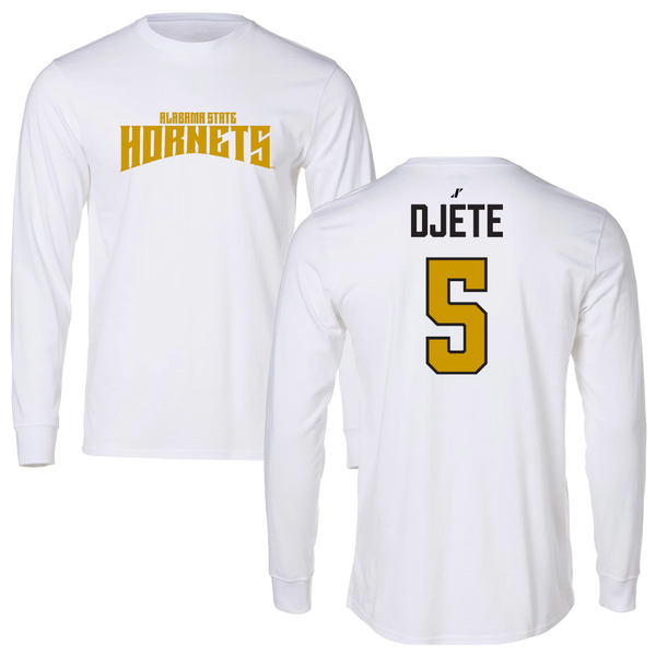 Alabama State University Football White Classic Performance Long Sleeve - #5 Dylan Djete