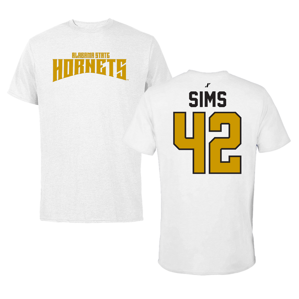 Alabama State University Football White Classic Tee - #42 Tashaun Sims