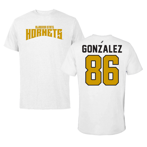 Alabama State University Football White Classic Performance Tee - #86 Drake Gonzalez