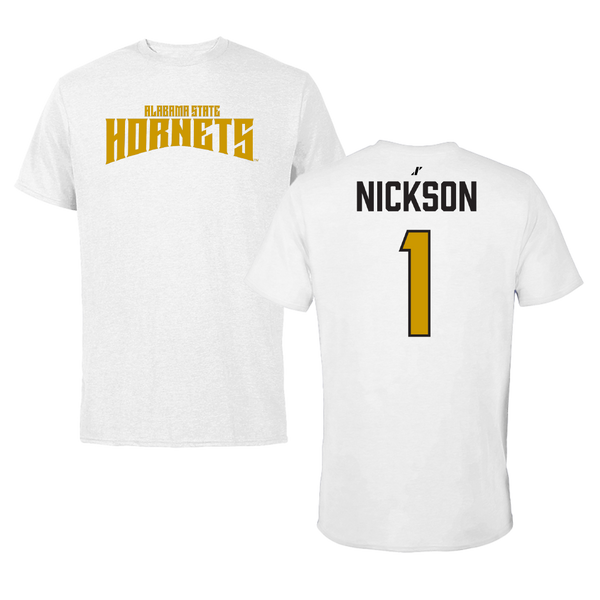 Alabama State University Football White Classic Tee - #1 Willie Nickson