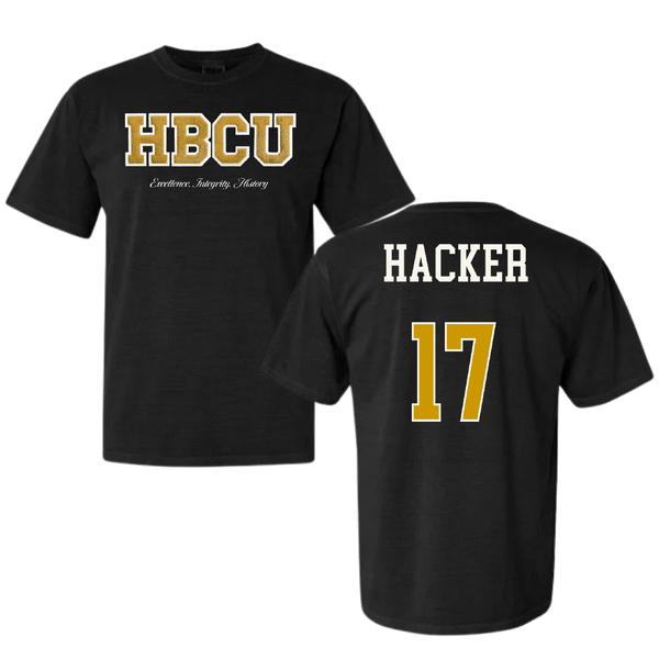 Alabama State University Soccer (W) Black HBCU Varsity Comfort Colors Tee - #17 McKinley Hacker
