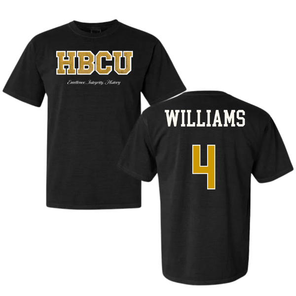 Alabama State University Soccer (W) Black HBCU Varsity Comfort Colors Tee - #4 Tatyana Williams