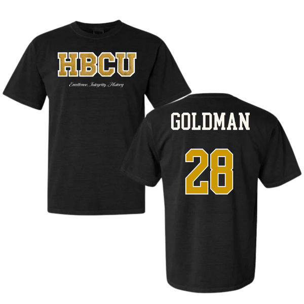 Alabama State University Soccer (W) Black HBCU Varsity Comfort Colors Tee - #28 Morgan Goldman