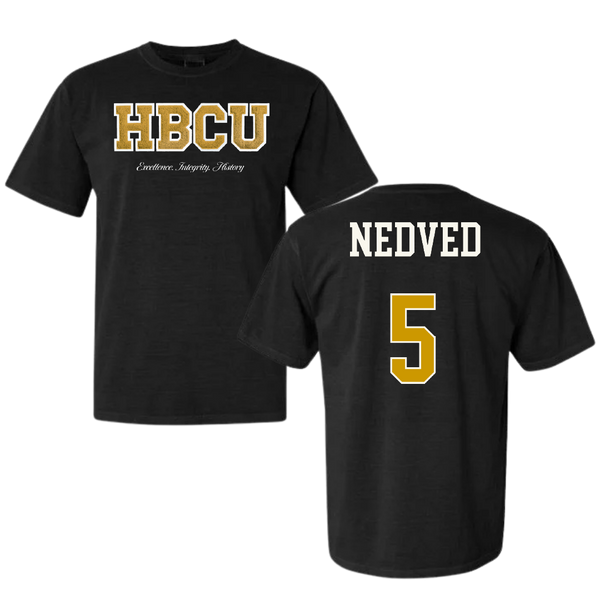 Alabama State University Soccer (W) Black HBCU Varsity Comfort Colors Tee - #5 Katherine Nedved