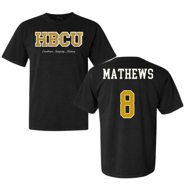 Alabama State University Soccer (W) Black HBCU Varsity Comfort Colors Tee - #8 Erica Mathews