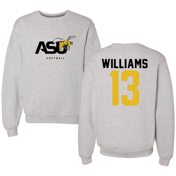 Alabama State University Softball Light Gray Crewneck - #13 Bailee Williams