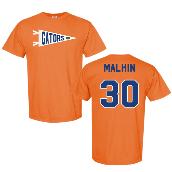 University of Florida Soccer Orange Pennant Comfort Colors Tee - #30 Amelia Malkin