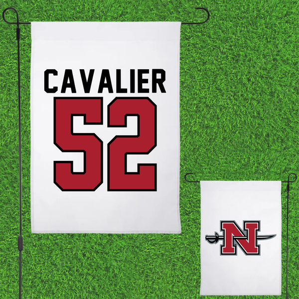 Nicholls State University Football White Garden Flag - #52 Andrew Cavalier